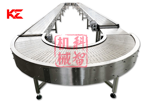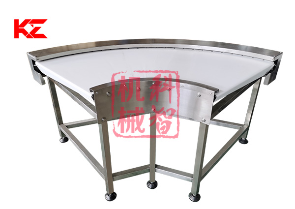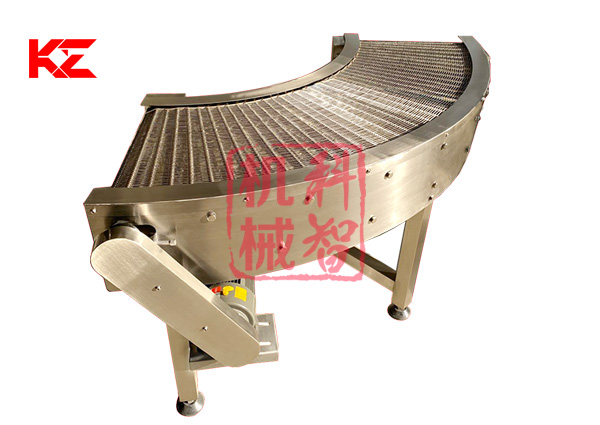 轉(zhuǎn)彎輸送機(jī)采用的形式有:網(wǎng)帶轉(zhuǎn)彎輸送機(jī)、鏈板式轉(zhuǎn)彎輸送機(jī)、皮帶式轉(zhuǎn)彎輸送機(jī)、鏈桿式轉(zhuǎn)彎輸送機(jī)、塑料模塊式轉(zhuǎn)彎輸送機(jī)等。轉(zhuǎn)彎角度有45度、90度、180度等等。轉(zhuǎn)彎食品輸送機(jī)的寬度和轉(zhuǎn)彎半徑均可根據(jù)需求定做。
